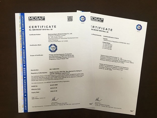 2019年1月23日,南通伊仕生物技術股份有限公司(以下簡稱“公司”,證券代碼:835749)收到了由南德意志集團TüV 簽發的MDSAP證書,標志著公司順利完成了MDSAP體系的國際質量體系認證。