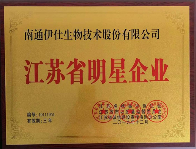 南通伊仕生物技術股份有限公司榮獲江蘇省明星企業稱號 |