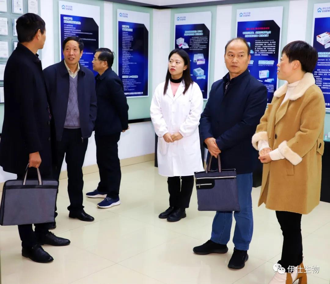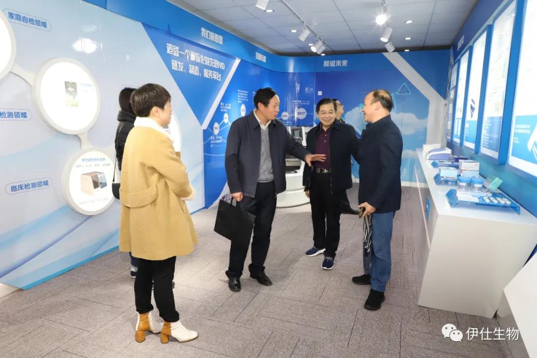 一行人在辦公室主任毛紅娟和研發總監顧飛的陪同下參觀了伊仕生物企業展廳、研究院展廳和生產車間。
