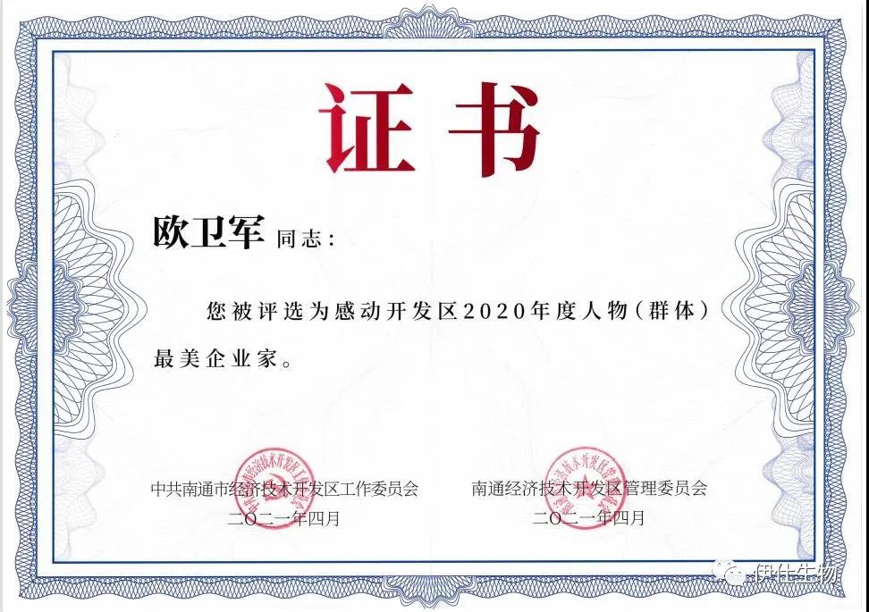 歐總是南通市中青年科學技術帶頭人,2020年度江蘇省企業“創新達人”,伊仕生物是南通市新冠肺炎疫情防控重點保障企業。