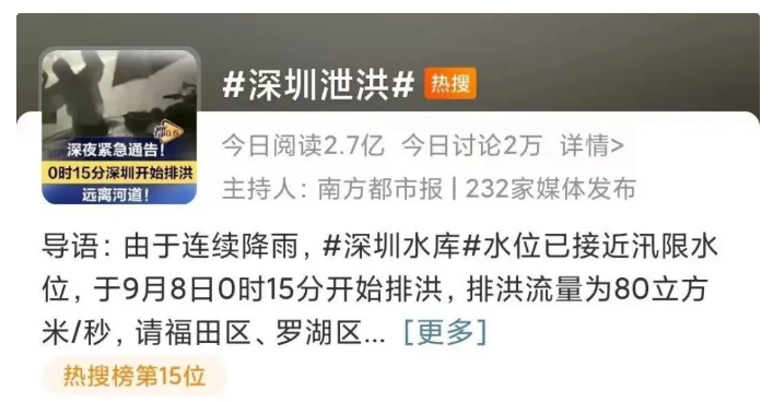 5日-9日,臺風“海葵”先后兩次登陸福建、廣東。受其影響,南方多地出現特大暴雨,福建省、廣東省氣象臺多次發布“暴雨預警一級”。福州、廈門、漳州、深圳、廣州、佛山等城市內澇嚴重,部分城市雨水齊腰,短時間強降雨超過100毫米,深圳降雨量更是打破1953年以來的降雨極值,地鐵灌水,深圳泄洪多次登上各大平臺的熱搜第一。